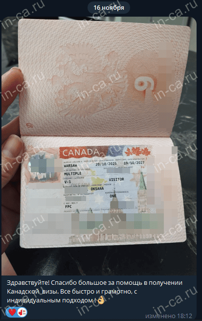 Здравствуйте! Спасибо большое за помощь в получении Канадской визы. Все быстро и грамотно, с индивидуальным подходом !👌